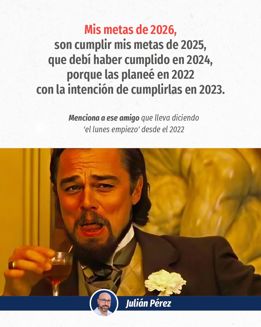 😏 Así se ven las metas de 2025 riéndose de ti y de mí. Todos tenemos un “procrastinador” escondido, y hoy lo vamos a sacar a pasear.